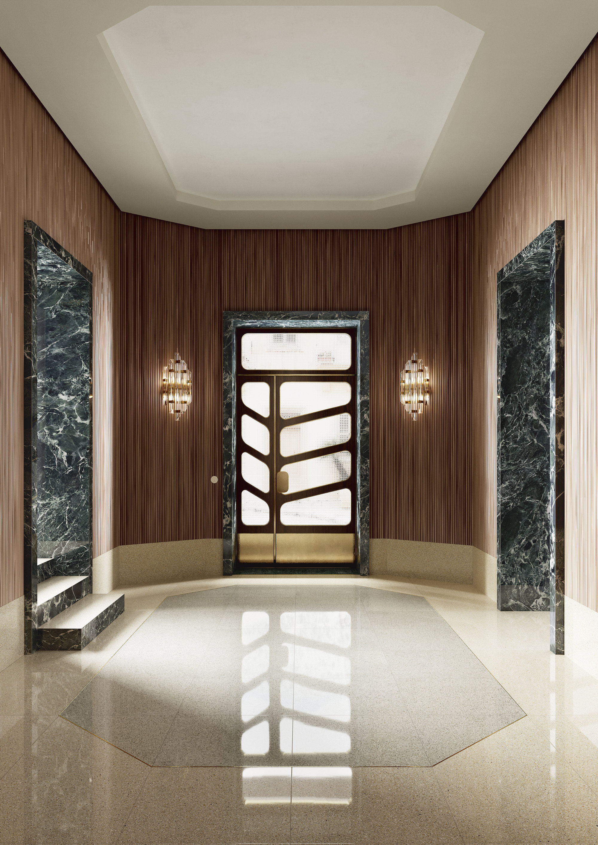 Emana reverberos casi astrales la mezcla ininterrumpida de elementos gráficos en el tono del plateado. Hay un equilibrio impecable entre el punteado claro y el oscuro, una correspondencia fluida entre mil tonos de gris que hacen a la superficie dinámica pero también discreta. El ambiente absorbe y al mismo tiempo suelta un atractivo retrofuturista.
