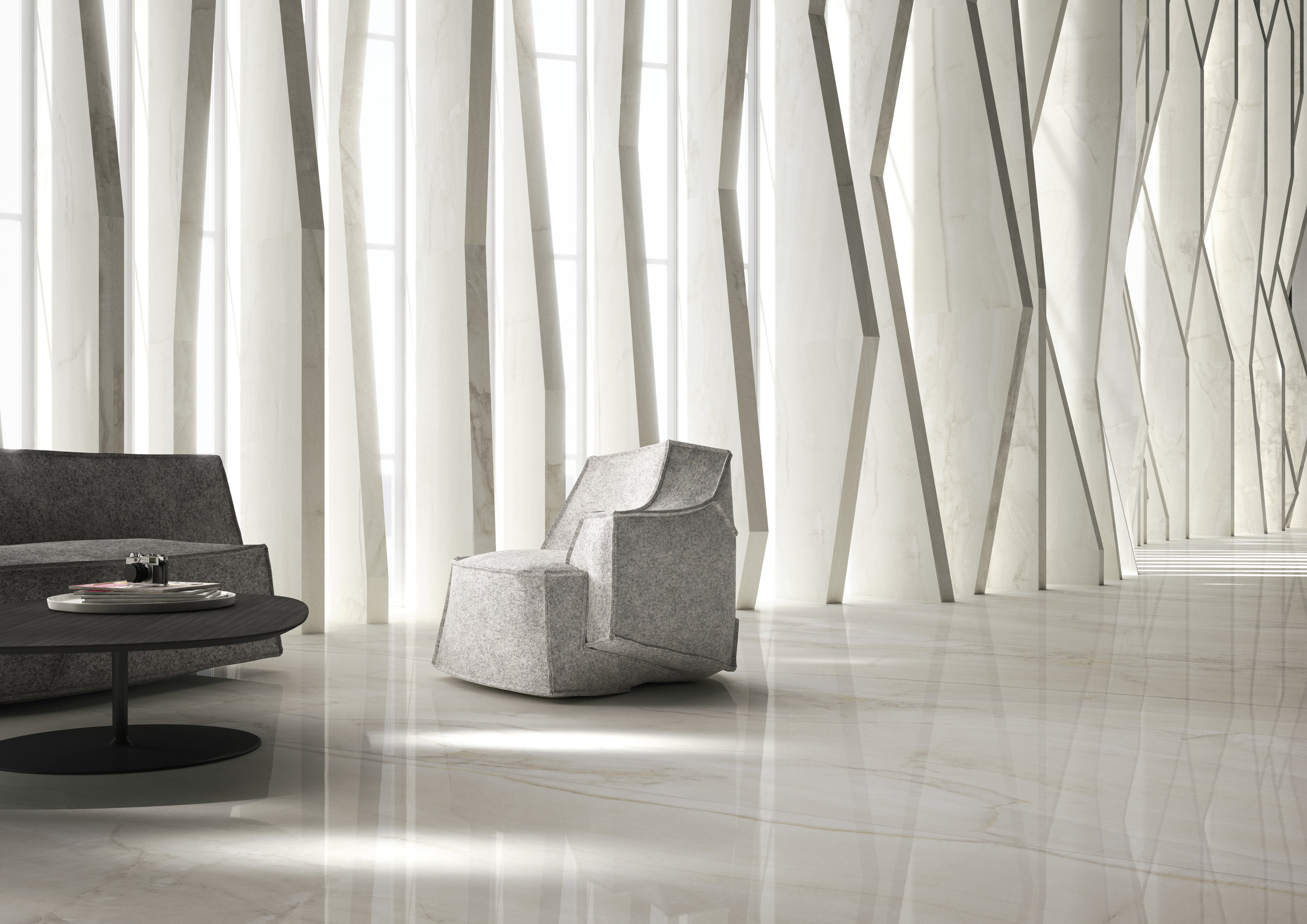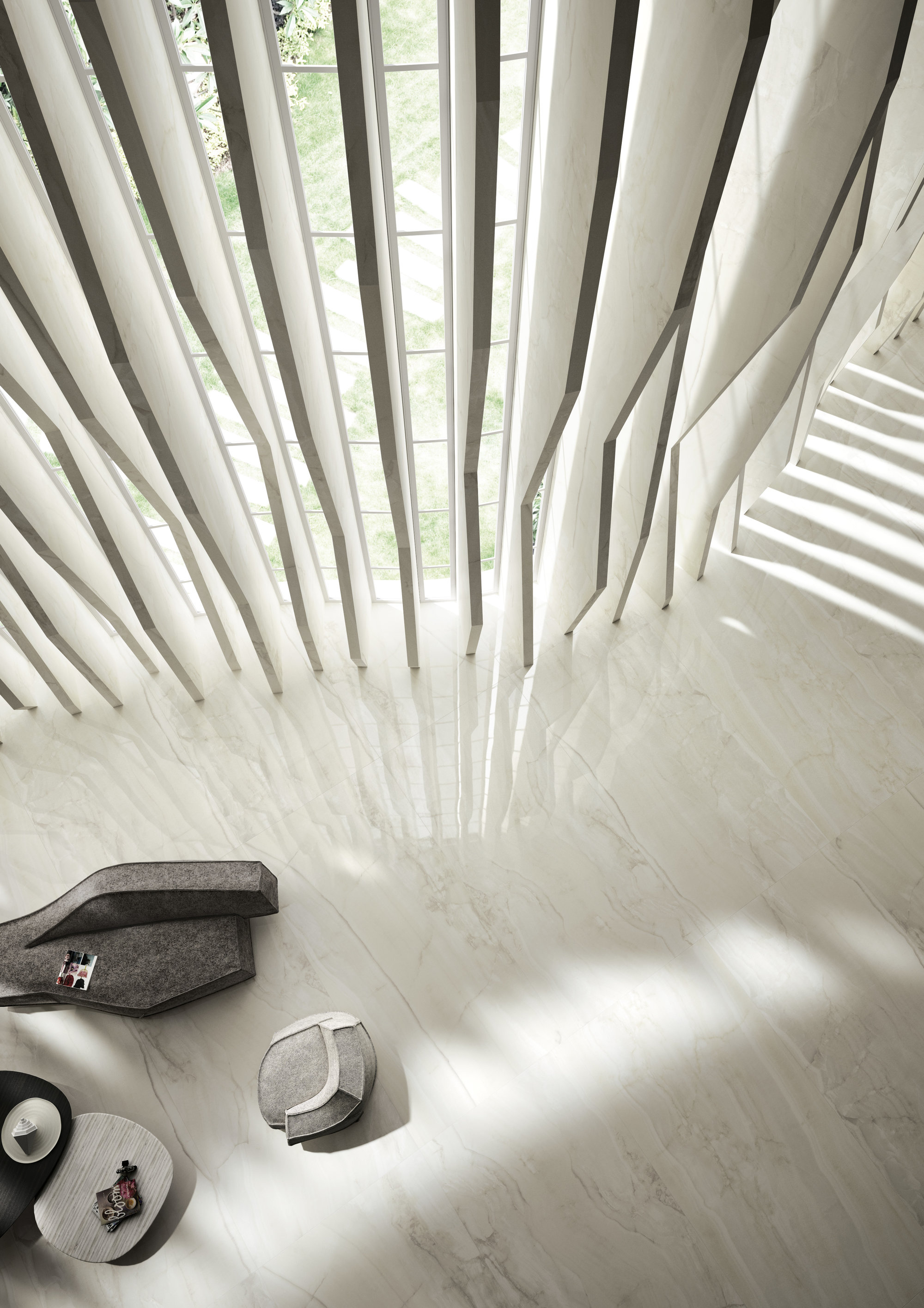 Bright Onyx tiene un diseño elegante y luminoso: base blanca perlada con matices gris-beige y finas vetas irregulares que recuerdan a drapeados de mármol, creando un efecto refinado y contemporáneo. El gran formato Maximum asegura versatilidad de aplicación sin comprometer el rendimiento del gres porcelánico Fiandre.