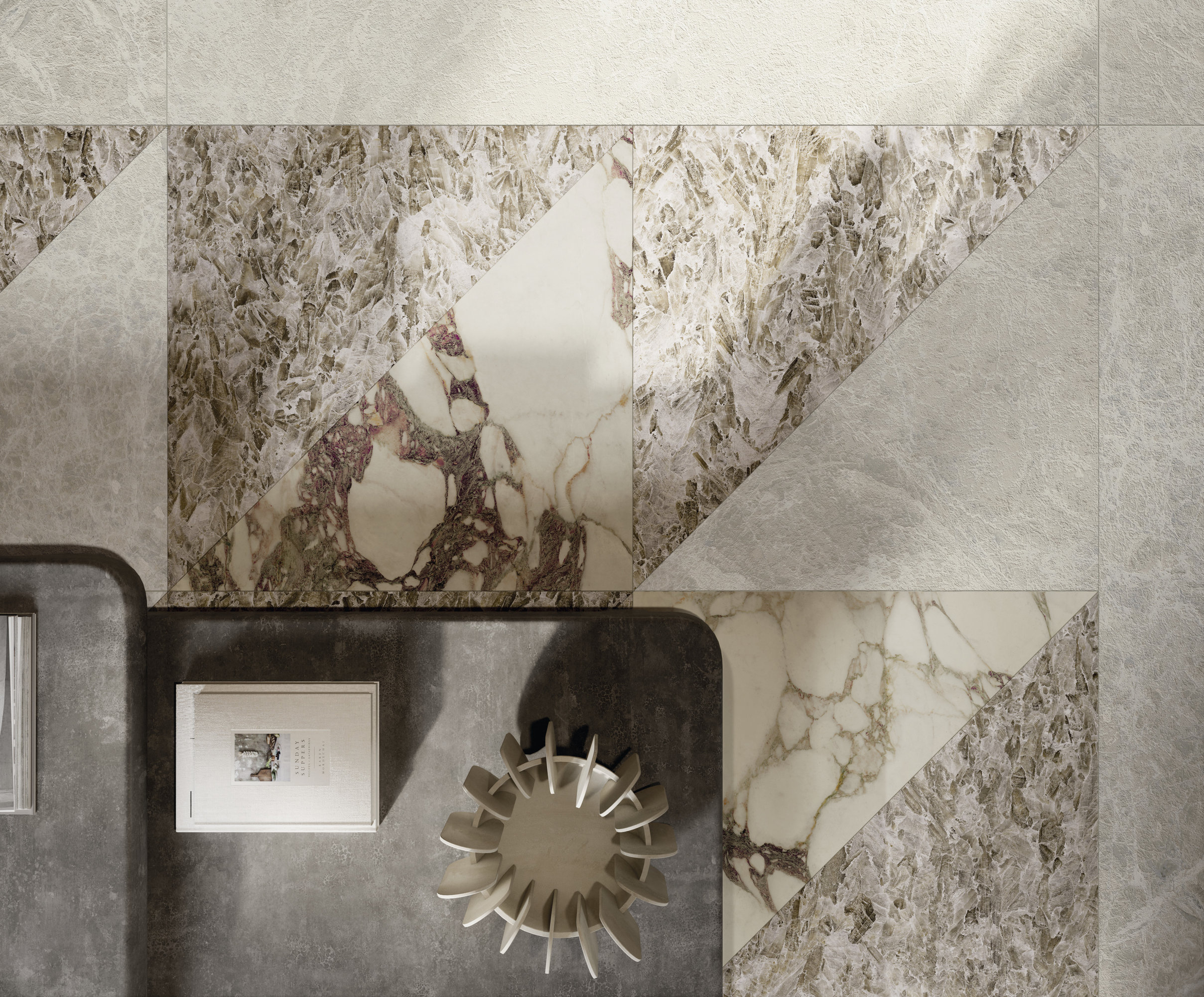 Dama Bianca Maximum es un color que transmite una elegancia sobria y limpia. Con su impecable blancura, es una textura sofisticada, adornada con continuos entrecruzamientos de vetas tono sobre tono. Nítida y sinuosa, se distingue por su fondo nacarado, que infunde una sensación de pureza y espaciosidad, en el que emergen los elementos decorativos con luz y prominencia. El acabado Natural confiere a la superficie cerámica un efecto opaco, ligeramente matérico y agradable al tacto.