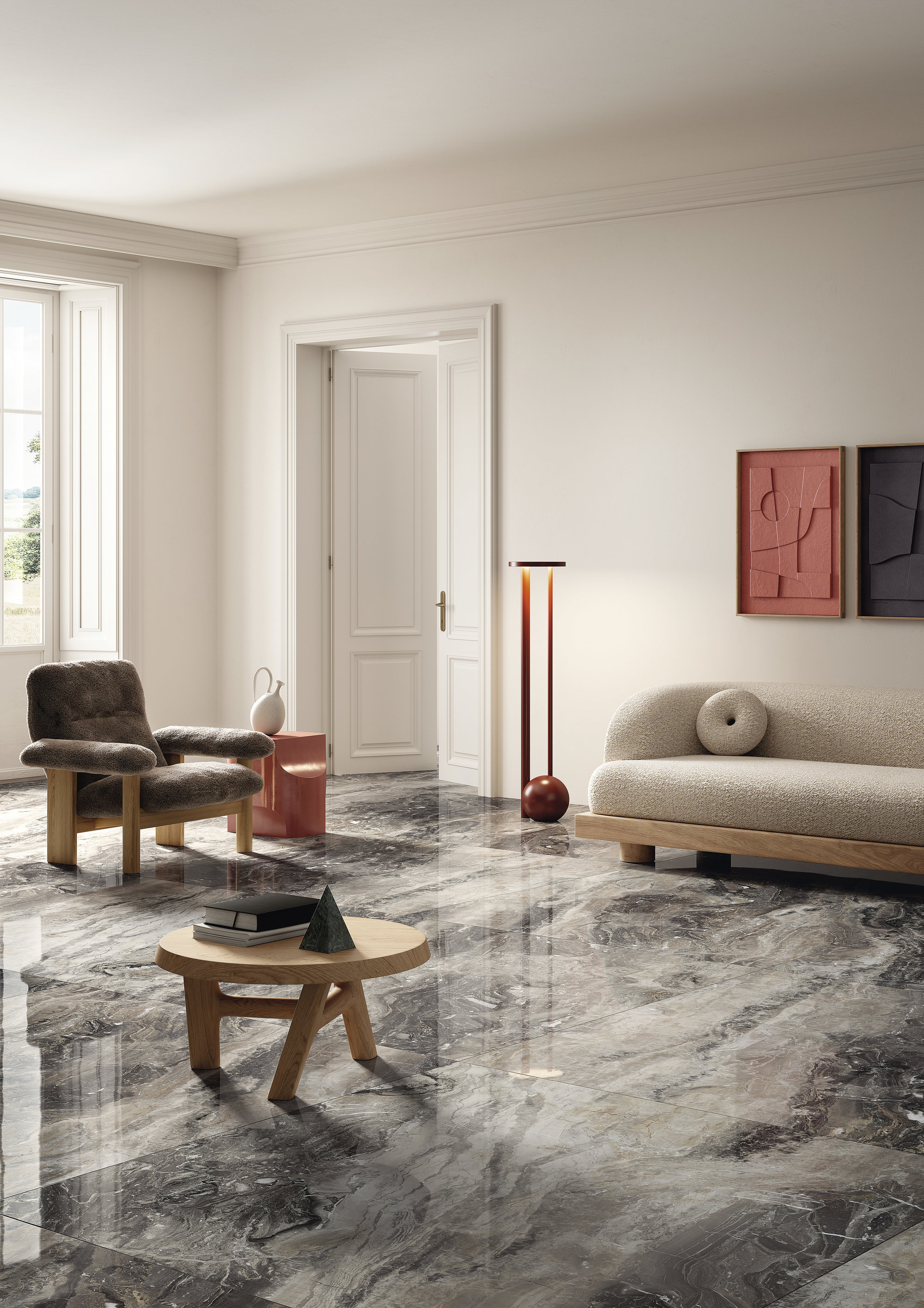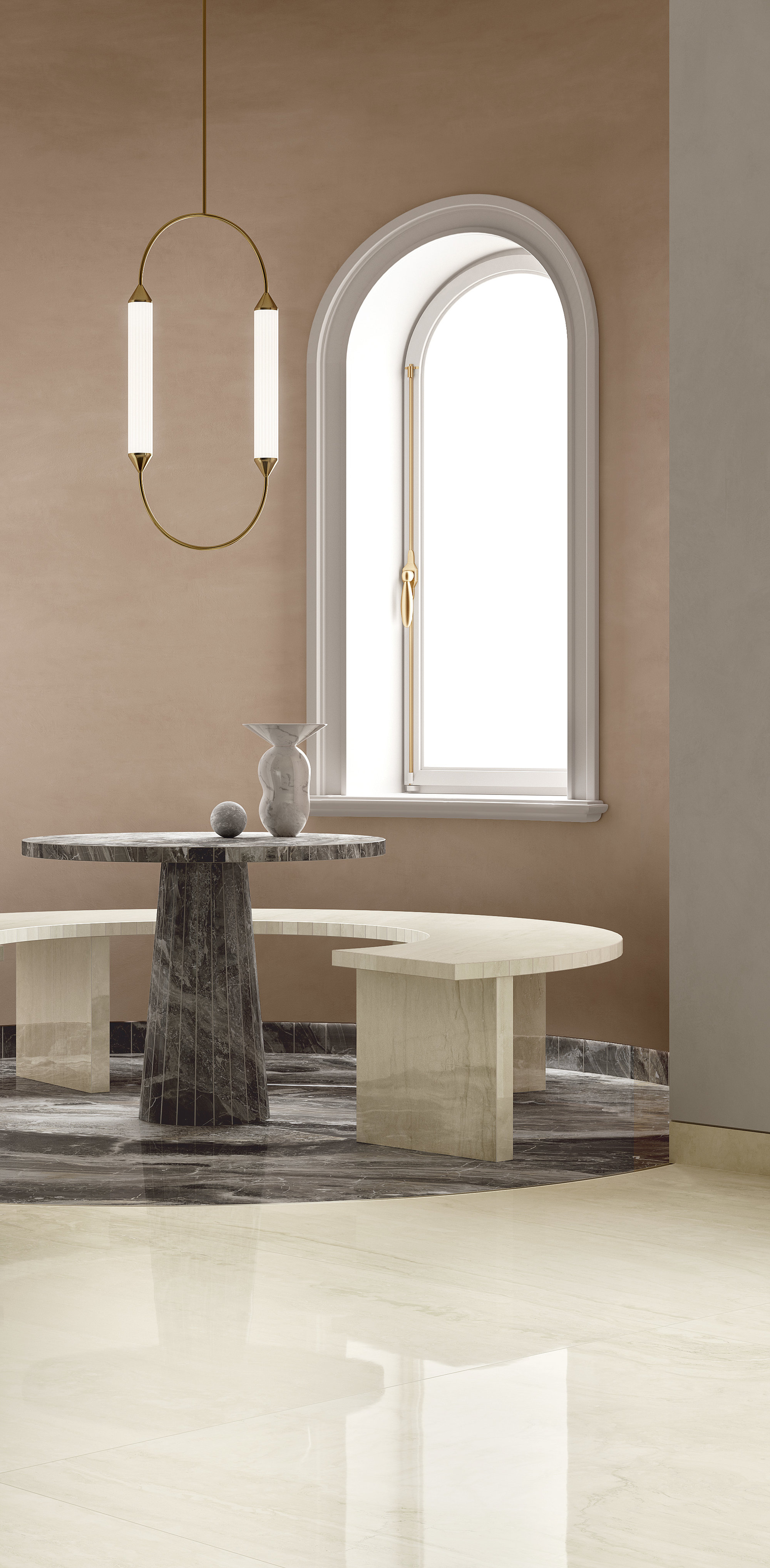 Tonalidades de blanco, combinadas con diferentes matices de gris y marrón y sutiles toques color ocre, aportan a Orobico Arabescato una estética viva y sinuosa. El acabado pulido realza esta superficie en toda su riqueza; también disponible en versión veta abierta (book-match), Arabescato Orobico es la elección ideal para arquitectura e interiores de prestigio, tanto residenciales como comerciales o públicos. Además de aplicaciones en suelos y revestimientos, también es posible personalizar mobiliario y detalles arquitectónicos.