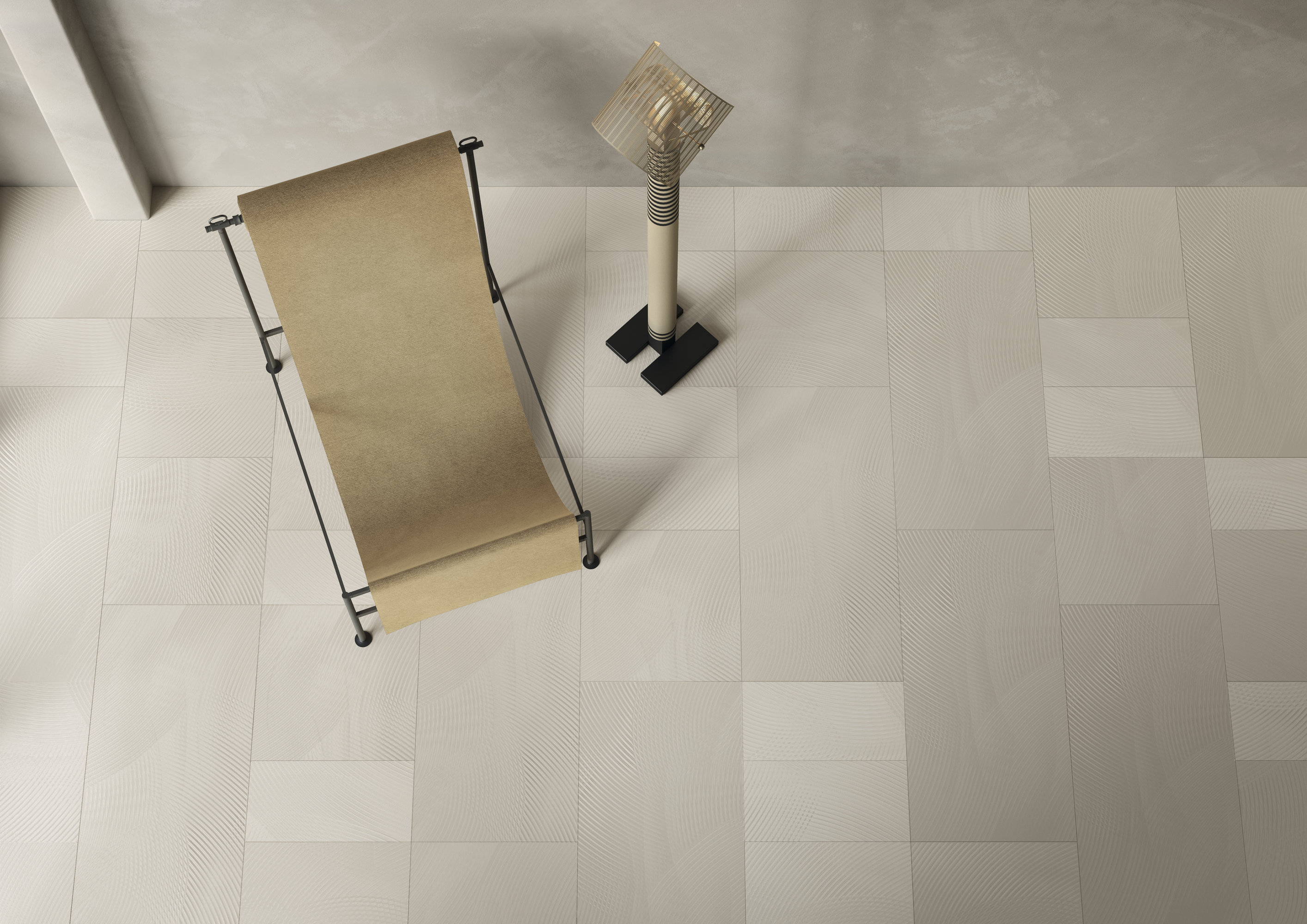 Filigranas tridimensionales solo necesitan encontrarse con la luz para otorgar a la superficie cerámica una mutabilidad inédita. Pearl es un color puro e iridiscente que impregna el ambiente de un resplandor radiante, multiplicando sus cualidades sensoriales además de estéticas. Pearl está disponible en tres opciones de diseño diferentes que dejan aflorar destellos de blanco puro en la superficie: Paint, con sus movimientos, reproduce un efecto de llana fresco e industrial; Fold, con sus formas irregulares, recuerda a un papel delicadamente arrugado; mientras que las redes de Net imitan un entrelazado de hilos metálicos y texturas sedosas.
