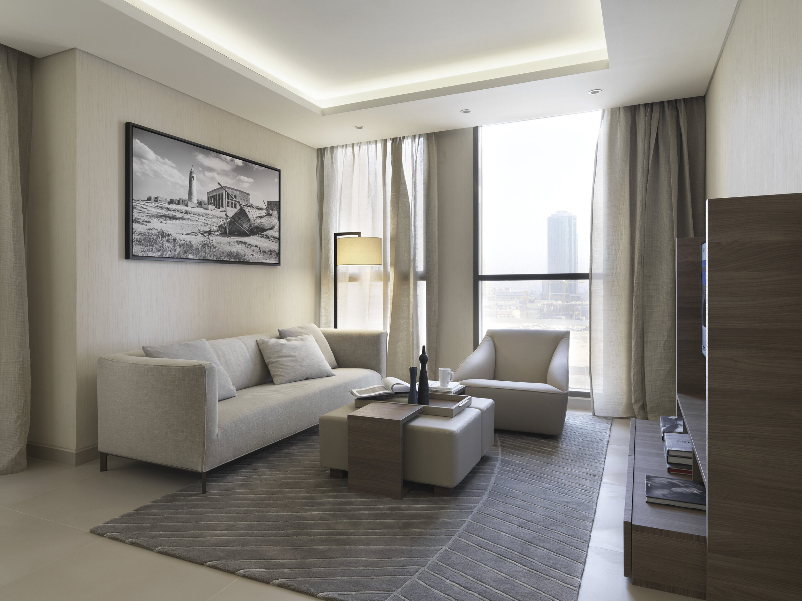 En 2009, el Studio Matteo Nunziati, líder en la hospitalidad internacional, diseñó los interiores del Fraser Suites, un hotel de 5 estrellas frente al paseo marítimo de West Bay, Doha. La torre residencial de 50 pisos alberga 388 apartamentos y espacios comunes, reinterpretando elementos árabes con elegancia italiana.