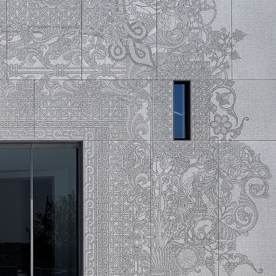 El corazón del proyecto St. Sarkis es la fachada, que representa un gran logro para Iris Ceramica Group, al ser el primer caso de uso de una tecnología de impresión digital de altísima definición para exteriores que involucra ópticamente al observador en una serie de escalas visuales anidadas.